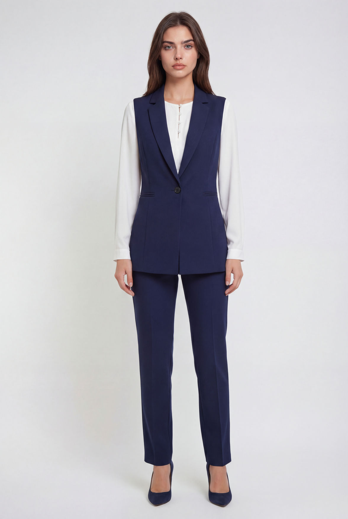 Chaleco Largo Azul Marino y Pantalón Azul Marino